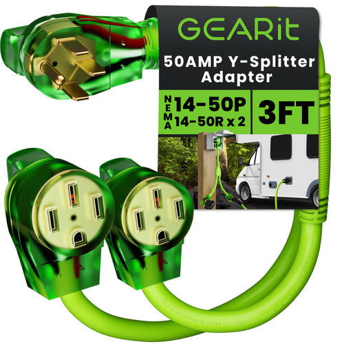 50 Amp NEMA 14-50P to Dual NEMA 14-50R Splitter Power Cord Adapter - 4 Prong STW 6/3, 8/1 AWG Shop Now