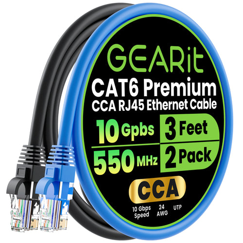 GearIT Cat6 Ethernet Patch Cable - CCA Network Cord - UTP, Black - GearIT