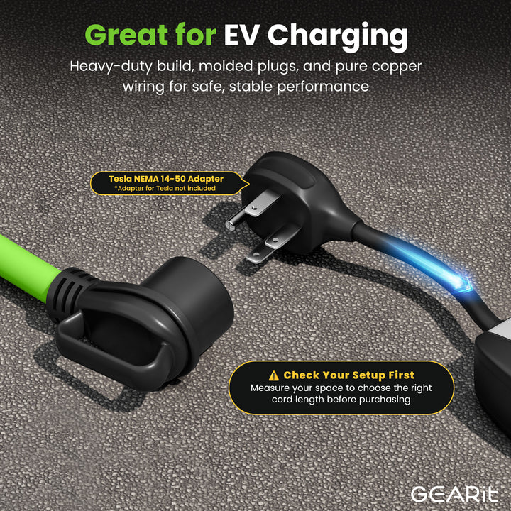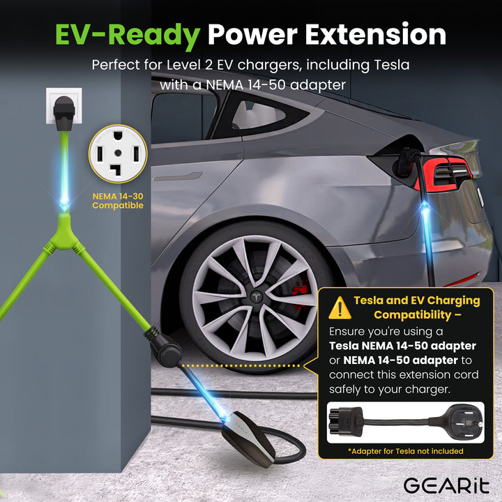 The GEARit Y-splitter adapter facilitates simultaneous connection of your RV and EV. With a 2 ft cable, heavy-duty capacity (125/250V | 3750/7500 Watts), and two receptacles, it's the perfect solution.