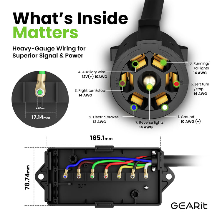 - Energize your World Everywhere: 7 pin trailer plug and trailer wiring kit keeps your whole vehicle connected during any trip without worries. GEARit gives you heavy-duty and easy-use products to ensure you're always connected