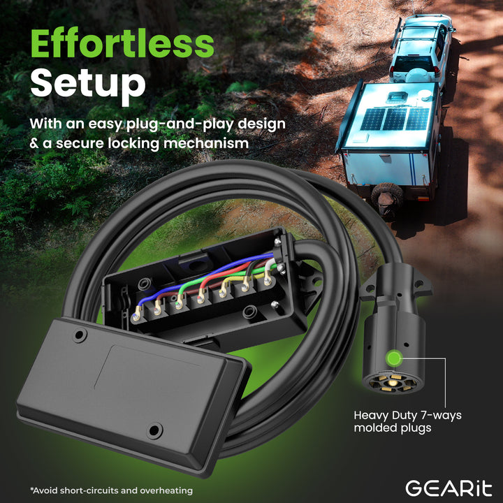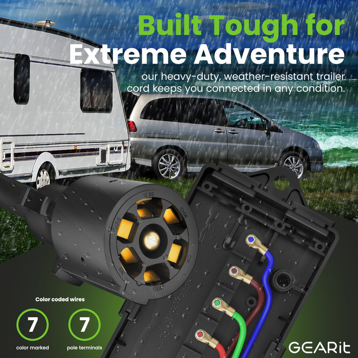 - Strong and Weather Resistant: GEARit trailer cable cord with 7 gang electrical junction box performs flawlessly in demanding weather situations. It can withstand prolonged exposure to the sun, rain, snow, and temperature changes.