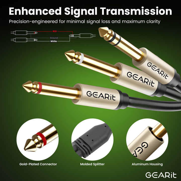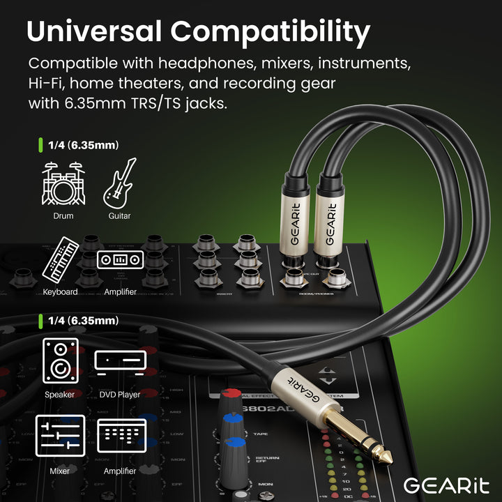 - PROFESSIONAL GRADE - Interconnect harmoniously headphones, mixers, and instruments with 6.35mm 1/4" TRS output to devices with Dual 2x 6.35mm 1/4" TS Mono Stereo Y-Cable Splitter jack inputs such as computers, Hi-Fi stereo, home theater and recording equipment.