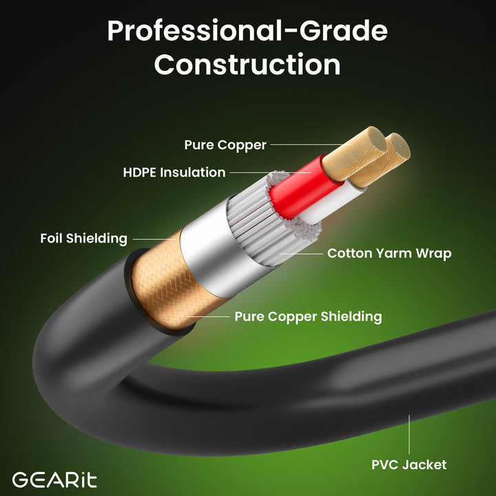- HIGH FIDELITY - 100% copper conductors for exceptional sound quality; braided shielding to reduce interference and excess noise; Improved frequency through polyethylene insulation