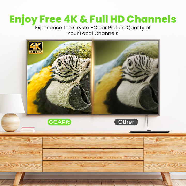 Equipped with an upgraded IC chip, this flat HDTV antenna delivers enhanced signal stability. It supports digital formats including 720p, 1080i, 1080p, and 4K UHD, ensuring outstanding performance and crystal-clear picture quality.