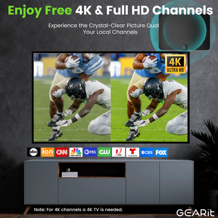 Enjoy high-quality over-the-air channels with our flat indoor TV antenna—no cable or subscription fees required. Watch your favorite content, from news to sports, with advanced technology ensuring smooth and sharp transmission.