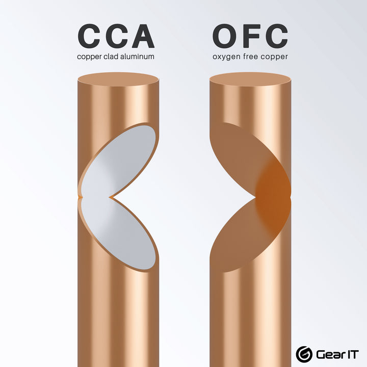 - COPPER CLAD ALUMINUM (CCA) - Our primary cable CCA wire is the most economical option for choosing power or ground wire and is a great conductor of power. Copper coated aluminum gives you an economic power cable with excellent power transfer. Systems that require more power should use ofc cable wiring.