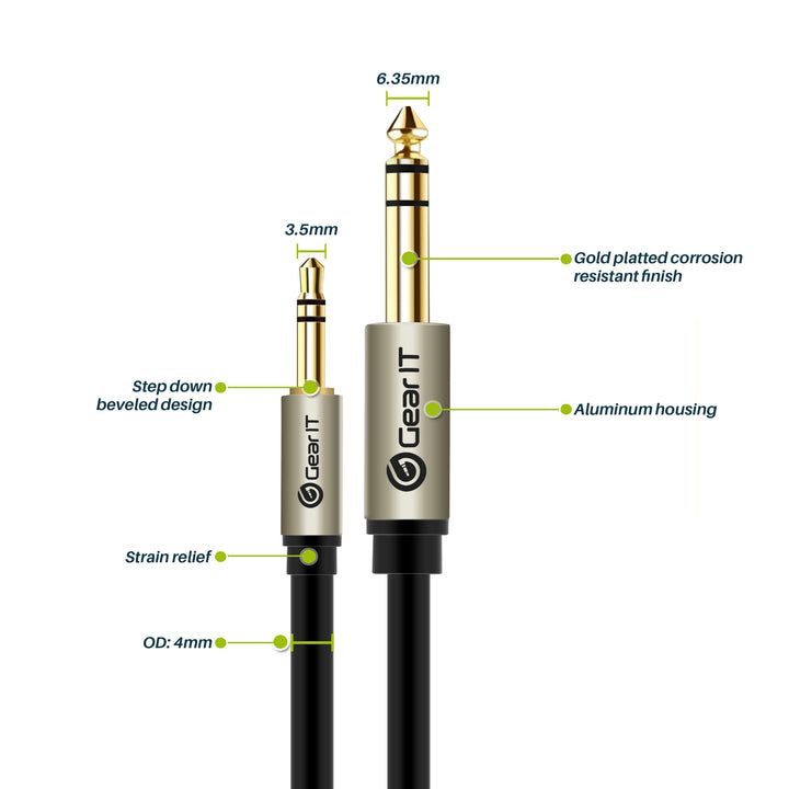 GearIT 2-Pack 1/8" (3.5mm) Male to 1/4" (6.35mm) Male TRS Stereo Audio Cable - GearIT