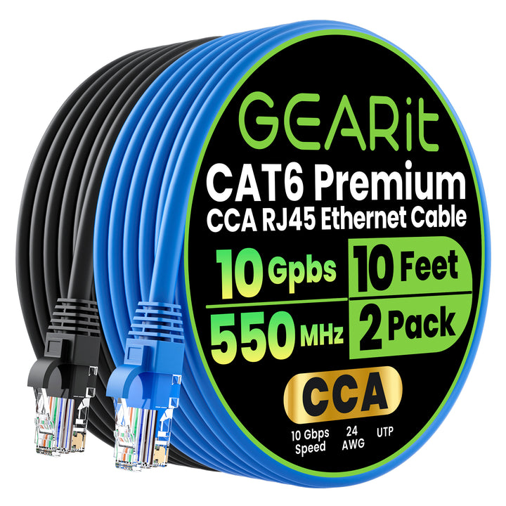 - CAT6 CCA ETHERNET CABLE - This Cat6 CCA cable is perfect for creating up to a 10 gigabit network in your home or office (10GBASE-T), and will also support gigabit networks (1000BASE-T), Fast Ethernet (100BASE-Tx), and 10BASE-T. Our GearIT Cat6 Cables are low cost and designed with the best CCA materials for high performance and high speed cat6 wire internet connection.