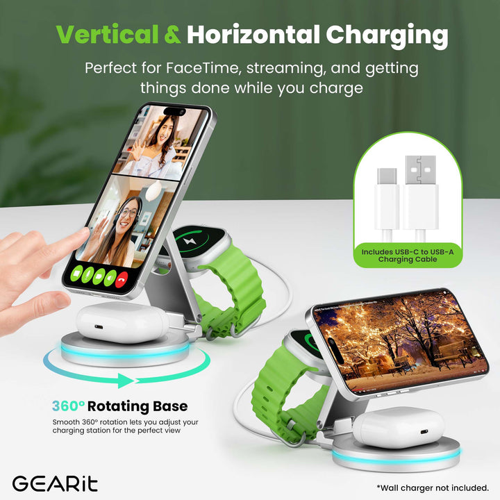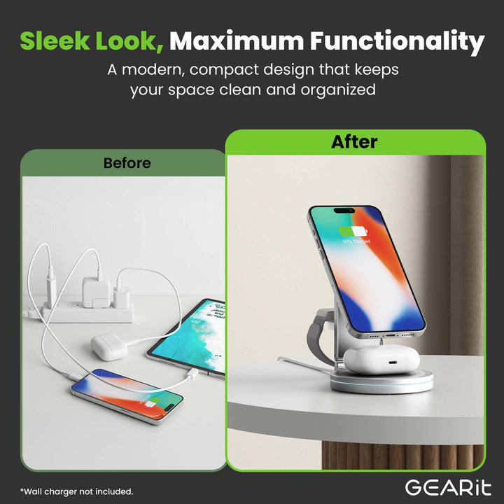 GEARit 3-in-1 15W MagSafe Wireless Charger Station