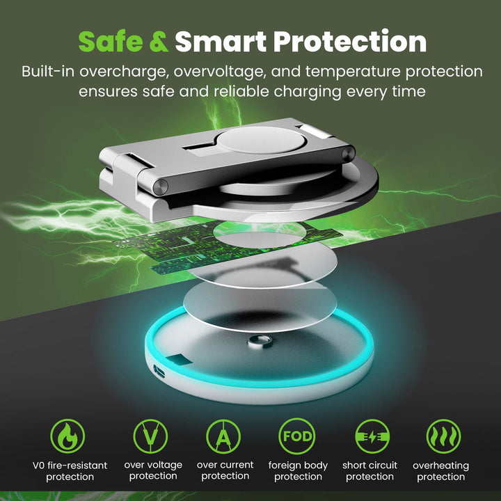 - Smart Charging, Smarter Protection - Experience peace of mind with the advanced safety tech of our wireless charger station, which shields your precious devices from overheating, overcharging, and electrical mishaps.