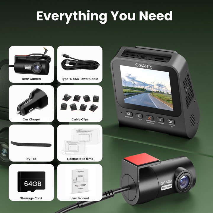 GEARit 4K Dual Dash Cam Front & Rear with WiFi GPS Night Vision 64GB Included