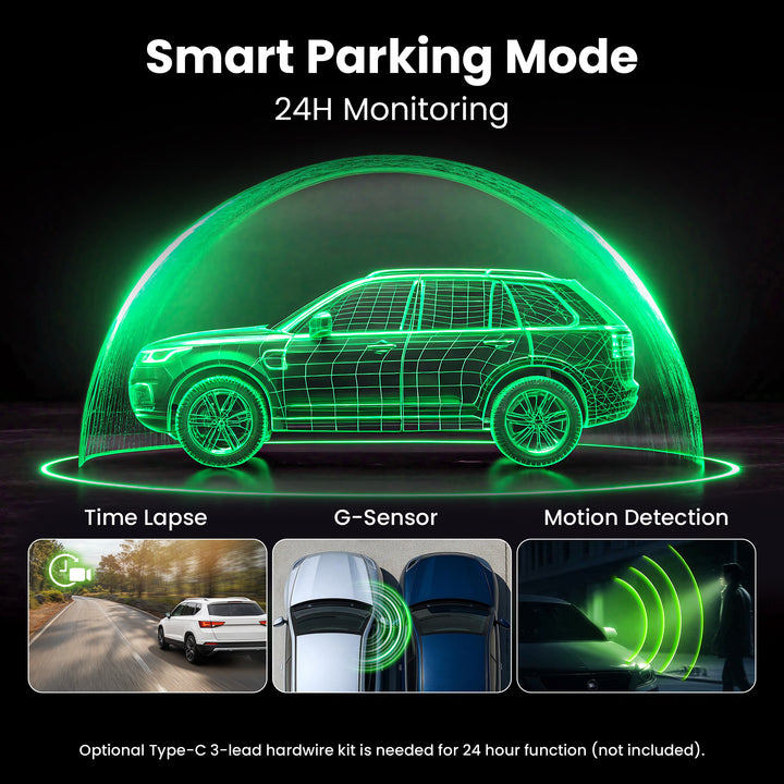 - Reliable Parking Mode: Powered by an internal sensor, this car dash cam offers 24/7 parking mode protection (hardwire kit sold separately). Detects motion and impacts when you're away, providing you with continuous surveillance and evidence against theft or damage, so you return to your car with confidence and a sense of security.