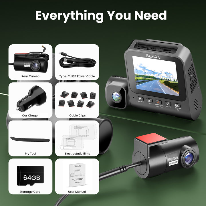 Quick Setup, Discreet Install & Trusted Support: Get set up in minutes – the package includes an adhesive mount, cable clips, and a detailed English instruction manual, making installation a breeze. The compact camera design sits neatly behind your rear-view mirror. Backed by a 24-month warranty GEARit stands behind its product.