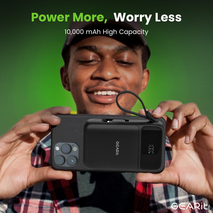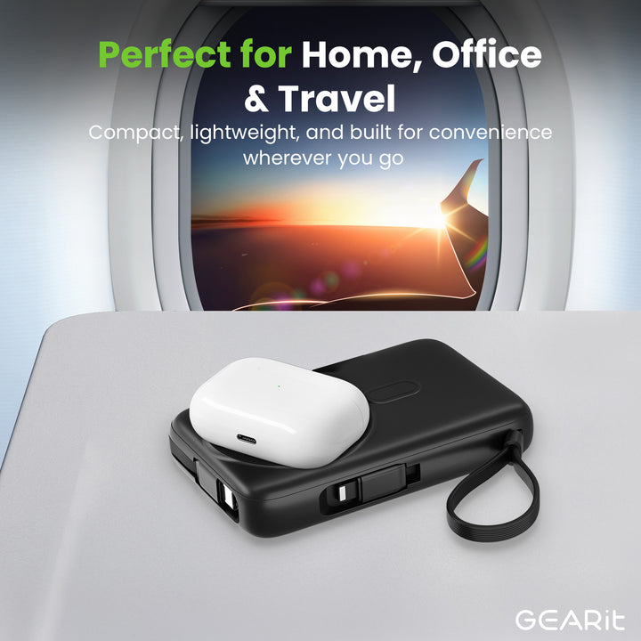 GEARit 5-in-1 10000mAh Power Bank Wireless MagSafe Charging with Built-in Cables
