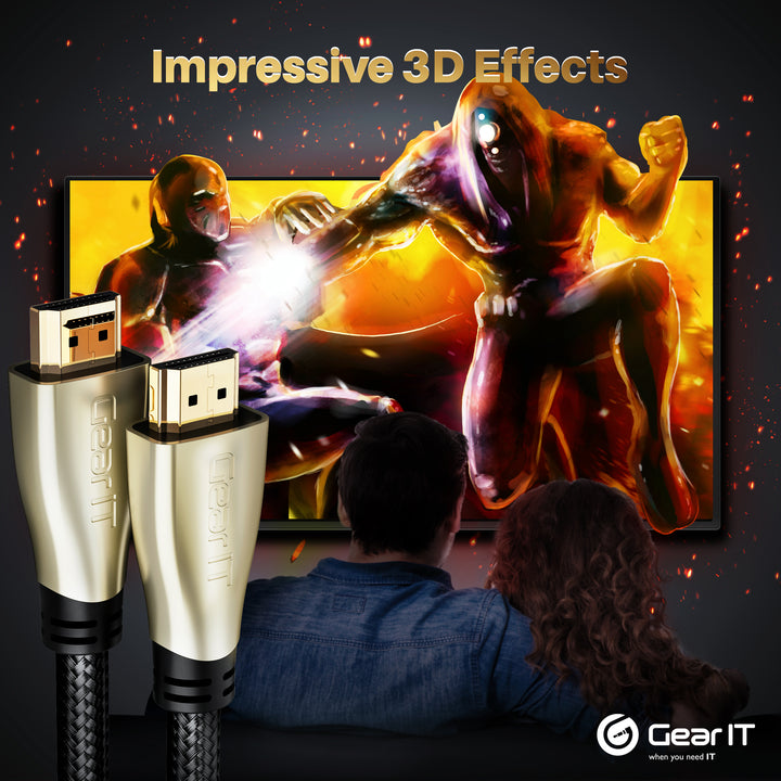 - GearIT HDMI cables come with a nylon braided jacket and a 24K gold plated connector head. They are HDMI to HDMI and male to male cords. Package includes: HDMI cables (see variation), two reusable cable ties. GearIT HDMI cords also come with lifetime warranty.