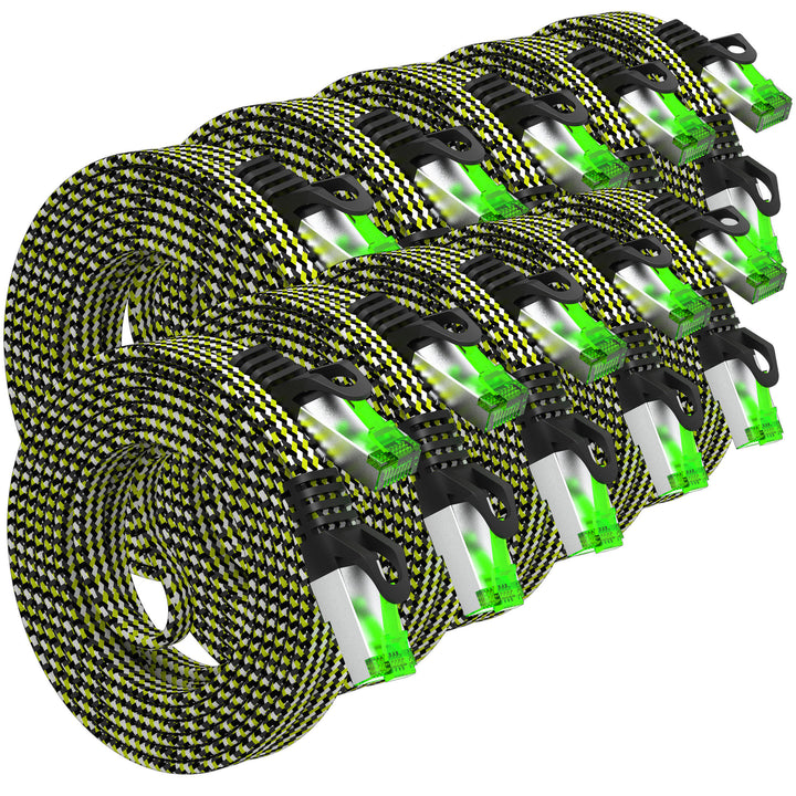 Cat 7 Ethernet Cable 10 Feet - 32 AWG Flat Patch Cable - Nylon Braided