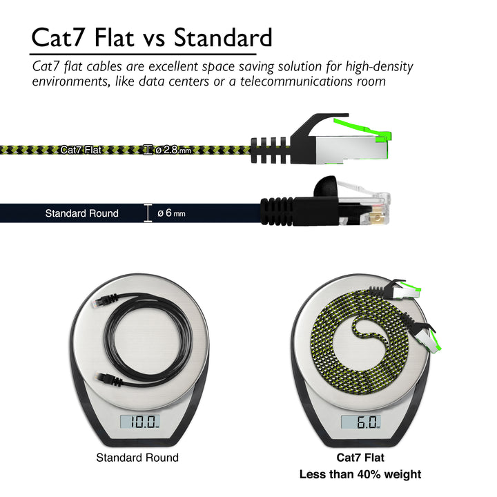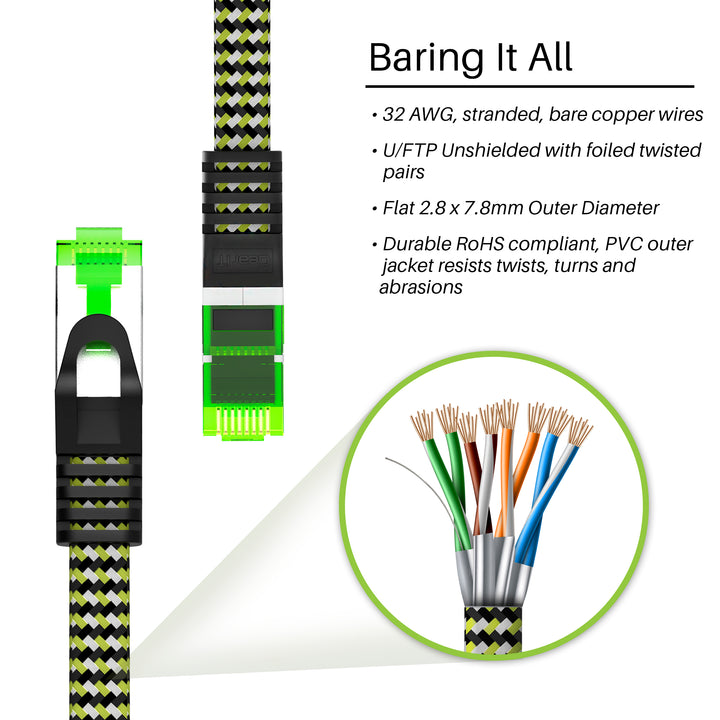 Cat 7 Ethernet Cable 100 Feet - 32 AWG Flat Patch Cable - Nylon Braided