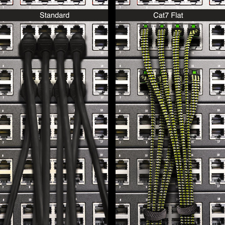 • SPECIAL BRAIDED NYLON NETWORK CABLE - Premium design and nylon braided GearIT Cat7 Ethernet cable is upgraded from regular pvc jacket. Nylon braided cable design is suitable as router cable, modem cable, network patch cable, switch panel cable, gaming ethernet cable.