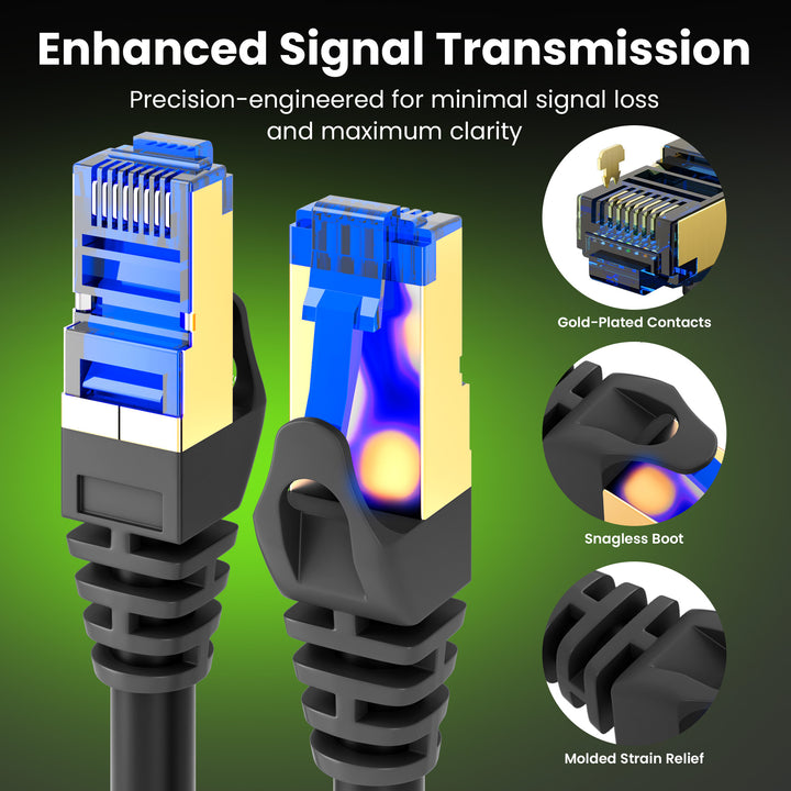 • [Wide COMPATIBILITY] Our Ethernet Cables are compatible with Cat5/Cat5e/Cat6/Cat6A/Cat7 and is suitable for extra long network cable needs such as ethernet for routers, laptops, computers, modems, gaming consoles (i.e PS4/PS5/Xbox One/Xbox 360), printers, scanners, Smart TVs, and network switches. Great for online gaming, high definition video streaming, server applications, cloud computing, and video surveillance.