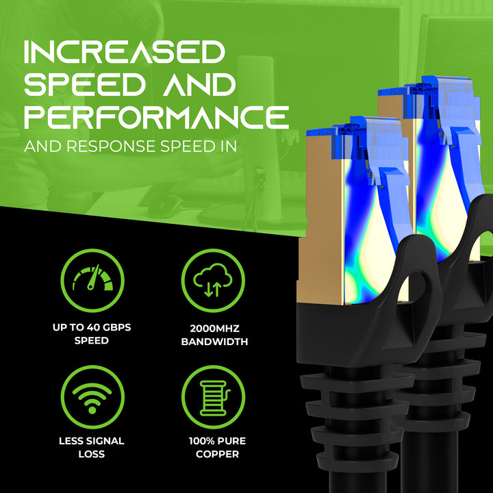 - [NEXT GENERATION PERFORMANCE] GearIT Cat8 (Category 8) Ethernet Cable is the most powerful, advanced ethernet cable available and boasts higher data transfer rates than lower rated ethernet cables. Our Cat8 Ethernet Cable provides enhanced performance, as it uses 2Ghz to transfer data from 1Gbps up to 40Gbps.