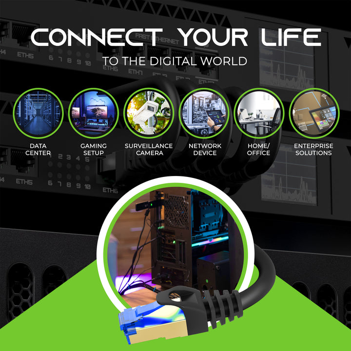 - [Wide COMPATIBILITY] Our Ethernet Cables are compatible with Cat5/Cat5e/Cat6/Cat6A/Cat7 and is suitable for extra long network cable needs such as ethernet for routers, laptops, computers, modems, gaming consoles (i.e PS4/PS5/Xbox One/Xbox 360), printers, scanners, Smart TVs, and network switches. Great for online gaming, high definition video streaming, server applications, cloud computing, and video surveillance.