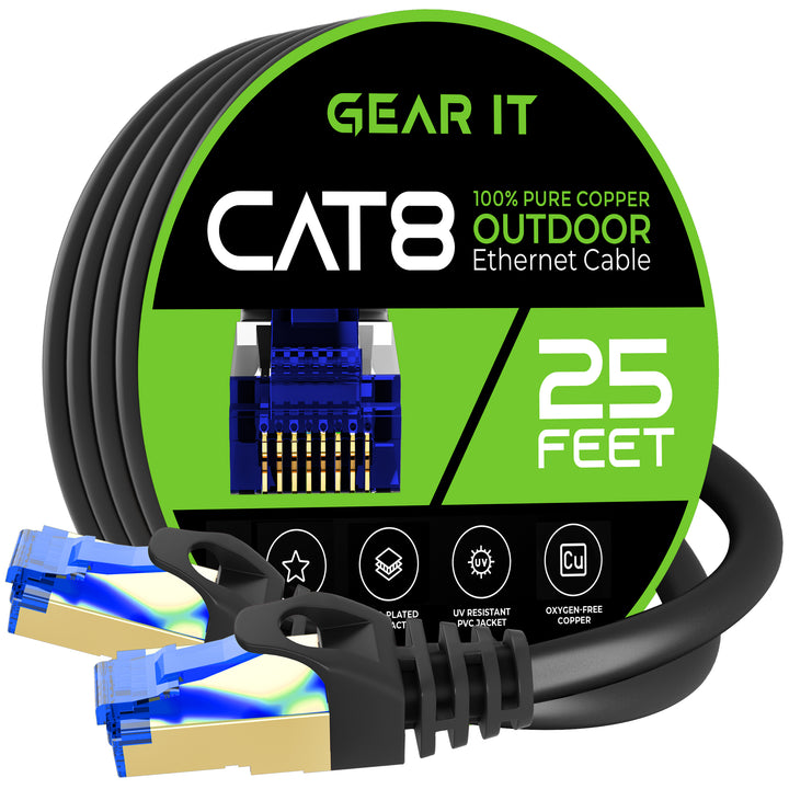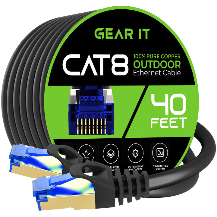 Cat8 Outdoor Ethernet Cable - Waterproof, Direct Burial, In-Ground, LLDPE, Black