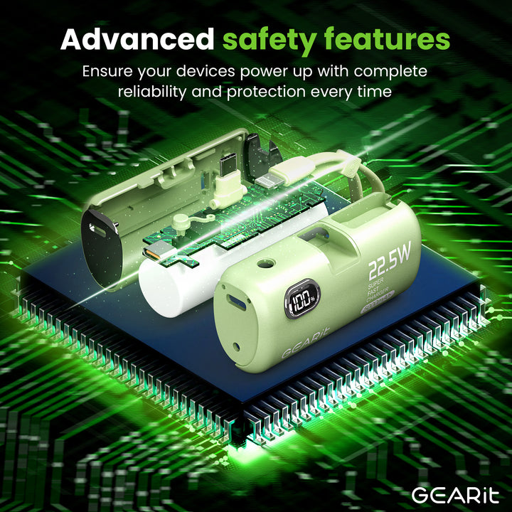 GEARit Lifestyle Series - 5000mAh Power Bank 3 Ports with Build in USB C and Lightning Connector