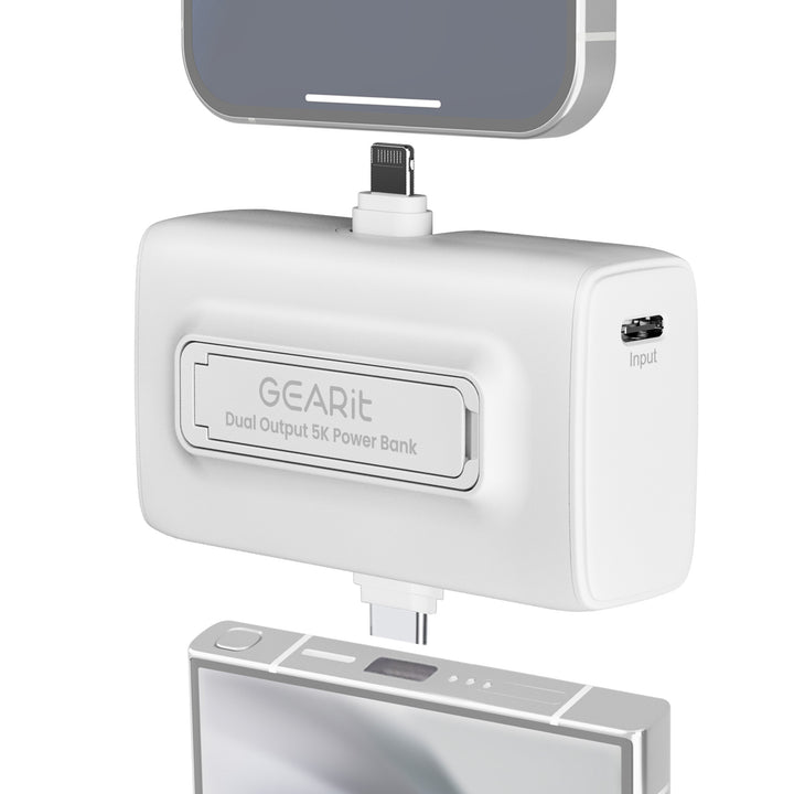 GEARit 5000 mAh Mini Power Bank with Built-in USB-C & Lightning Connectors