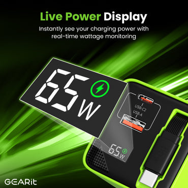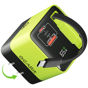 GEARit Lifestyle Series - 65W USB C GaN Charger 2 Port and Built-in Retractable USB C Cable