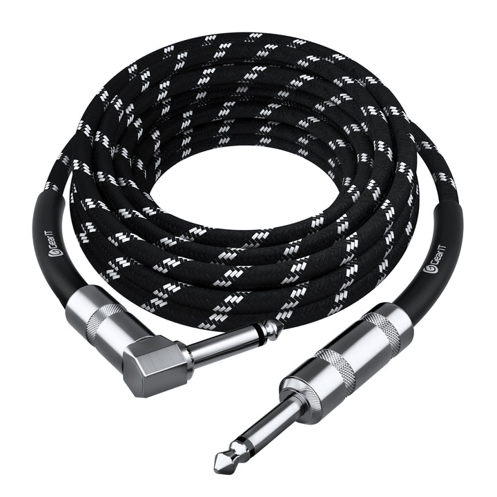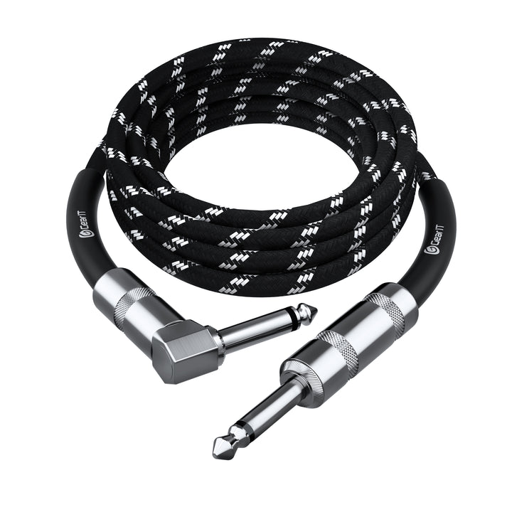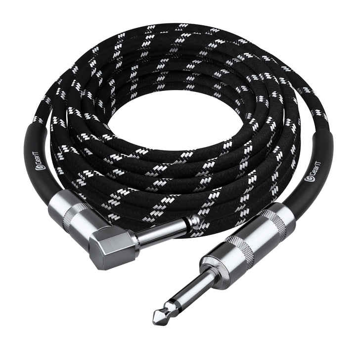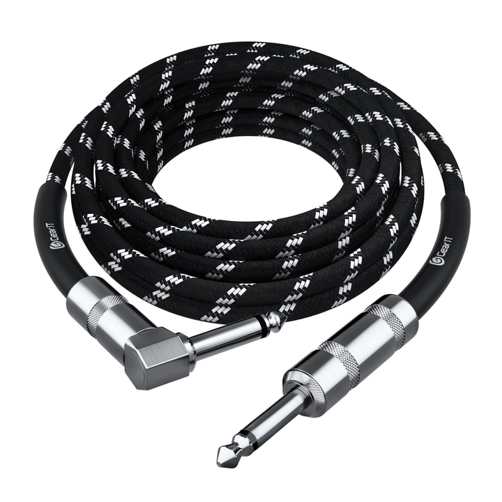 Right Angle to Straight 1/4 Inch Male to Male Guitar Instrument Cable, Black