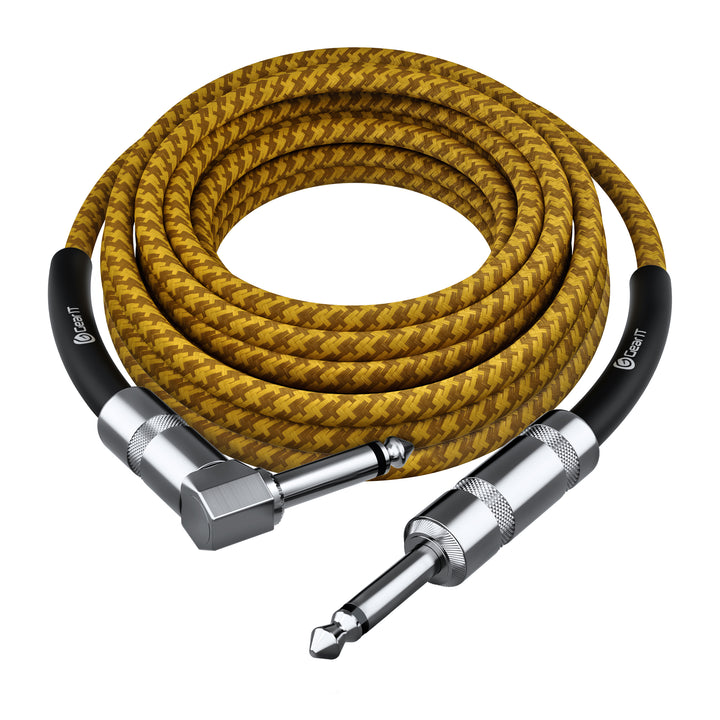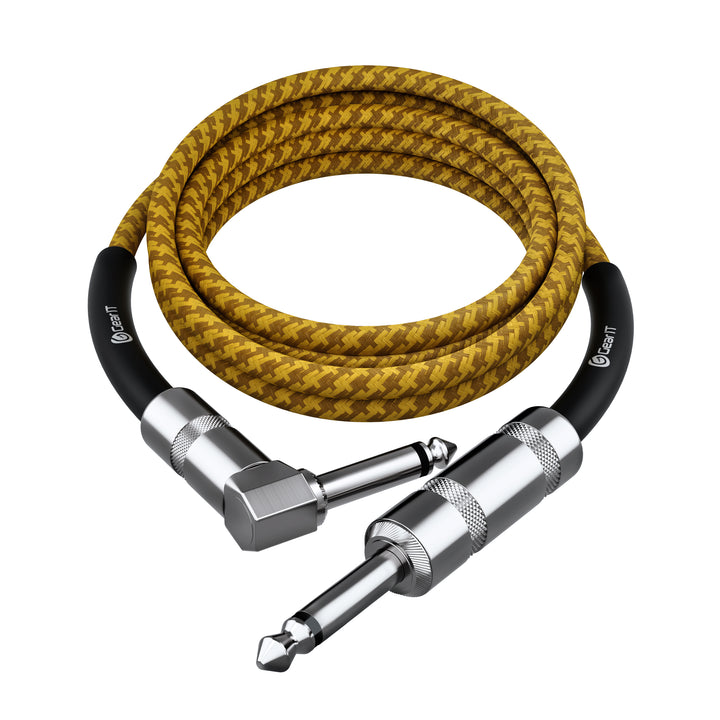 Right Angle to Straight 1/4 Inch Male to Male Guitar Instrument Cable, Yellow