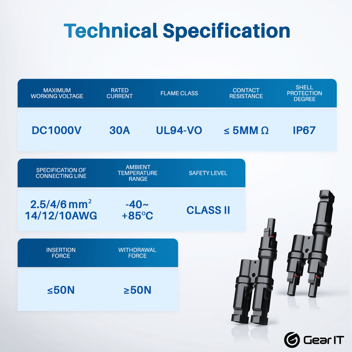 - MALE AND FEMALE CONNECTORS - Our parallel connectors are fitted with a male and female solar panel y connectors. Can be used with solar connectors to connect to the solar panel system.
