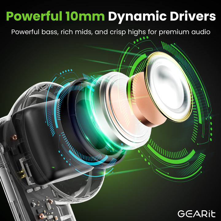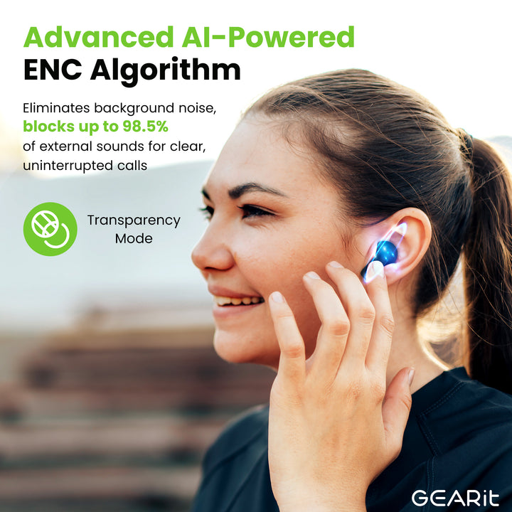 - Active Noise Cancellation (ANC): GEARit true wireless earbuds, compatible with iPhone/Android, use ANC technology to reduce external noise, blocking 98.5% of distractions.