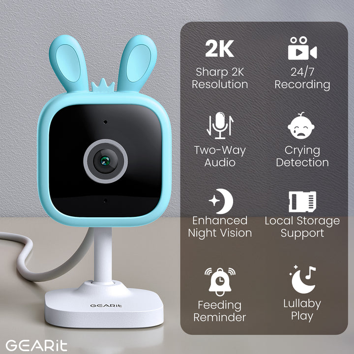 GEARit Wifi Baby Monitor Camera with Motion & Sound Detection - 2K Video, 2-Way Audio