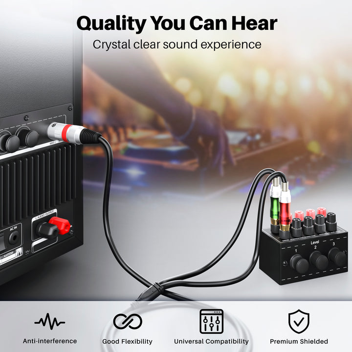 - QUALITY YOU CAN HEAR - Connect the XLR audio port to AV receiver, amplifier, Hi Fi stereo audio system, home theater system, computer sound, recording equipment, speaker, TV, CD, DVD, mixing console, and more.