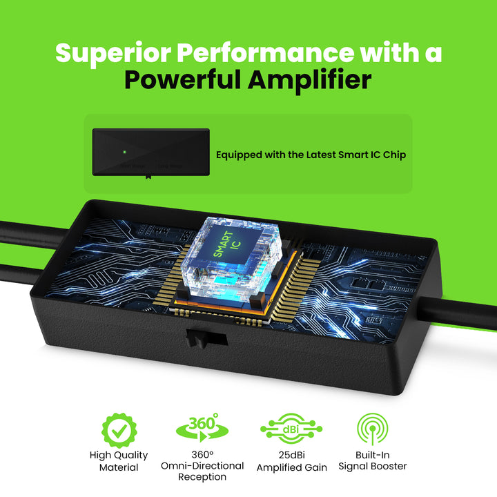 Equipped with an upgraded IC chip, this HDTV antenna delivers enhanced signal stability. It supports digital formats including 720p, 1080i, 1080p, and 4K UHD, ensuring outstanding performance and crystal-clear picture quality.