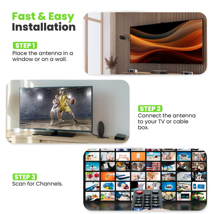 Enjoy high-quality over-the-air channels with our indoor TV antenna—no cable or subscription fees required. Watch your favorite content, from news to sports, with advanced technology ensuring smooth and sharp transmission.