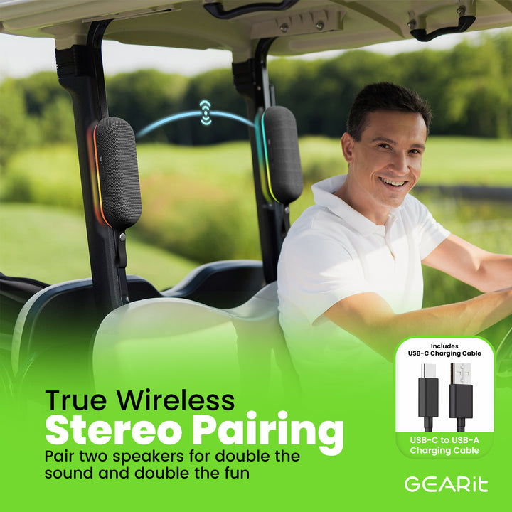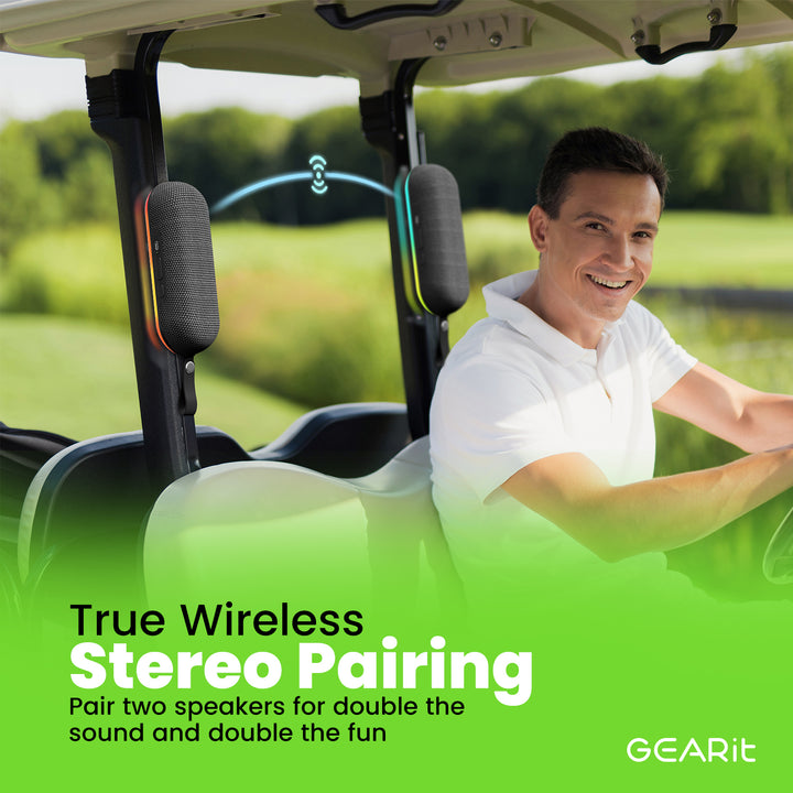 - GEARit IPX6 Water-Resistant Wireless Speakers: Designed for golfers, outdoor adventurers, and travelers, these magnetic Golf Speaker withstand splashes and rough conditions. They are a perfect companion for unpredictable weather and a thoughtful gift for men or women.